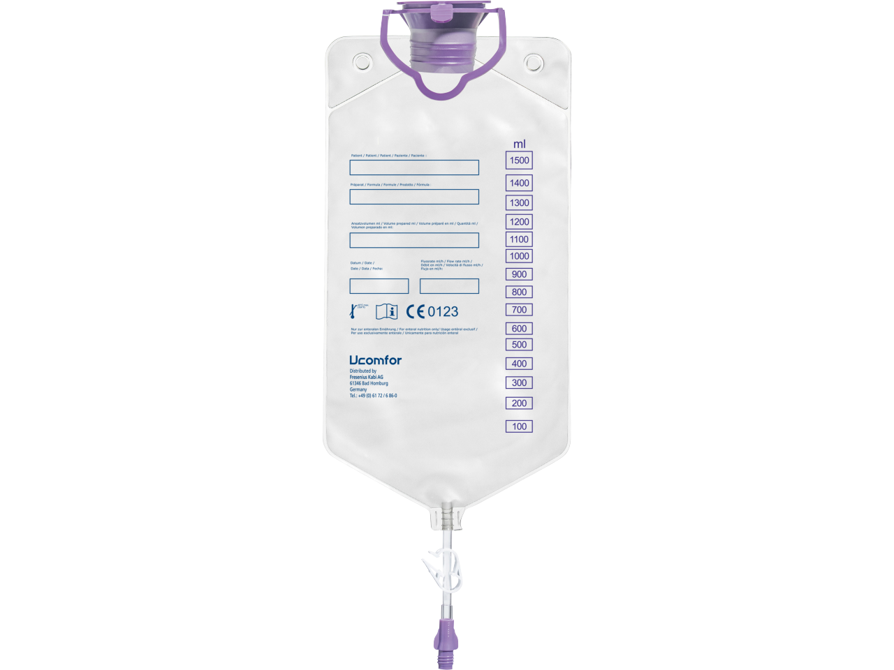 • Bolsa de 1500 ml con un gran orificio de llenado que se puede cerrar