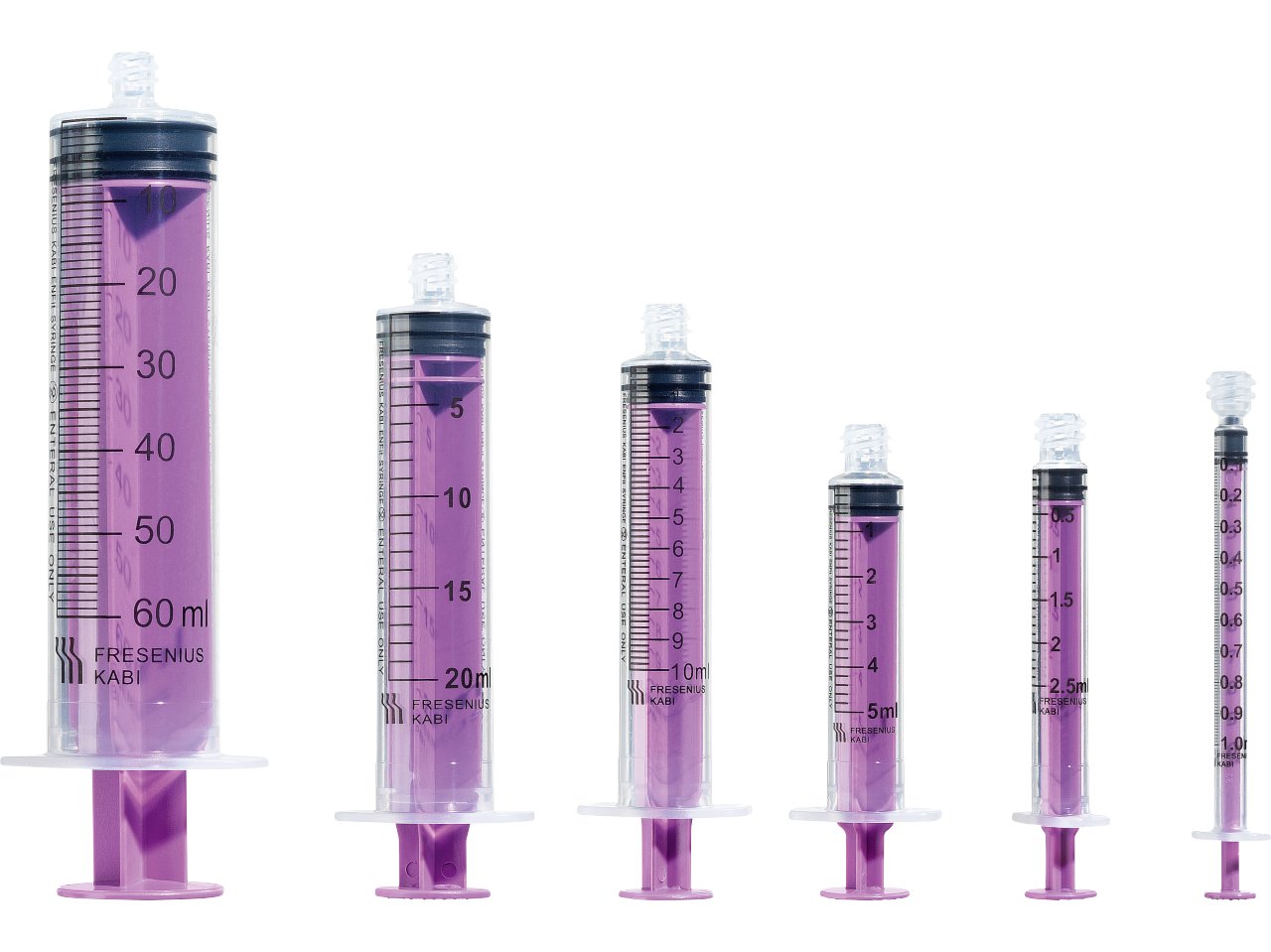 Jeringas de diferentes tipos, tamaños y volúmenes para casi cualquier situación de alimentación enteral.