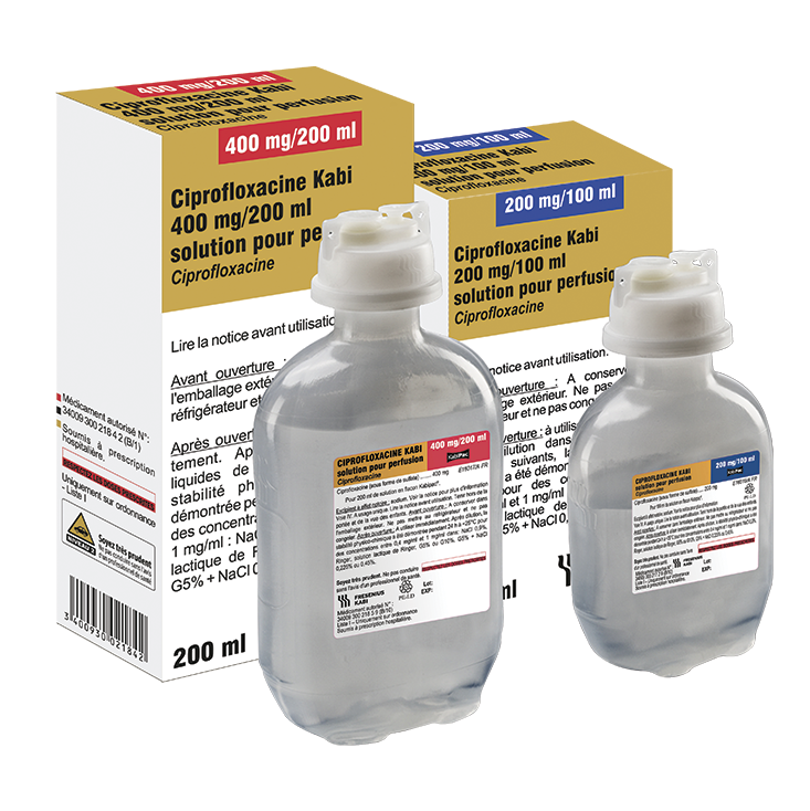 Données et documents de référence (RCP et Notice) disponibles sur la Base de Données Publique des Médicaments : Ciprofloxacine Kabi® 200 mg/100 ml, solution pour perfusion Ciprofloxacine Kabi® 400 mg/200 ml, solution pour perfusion
