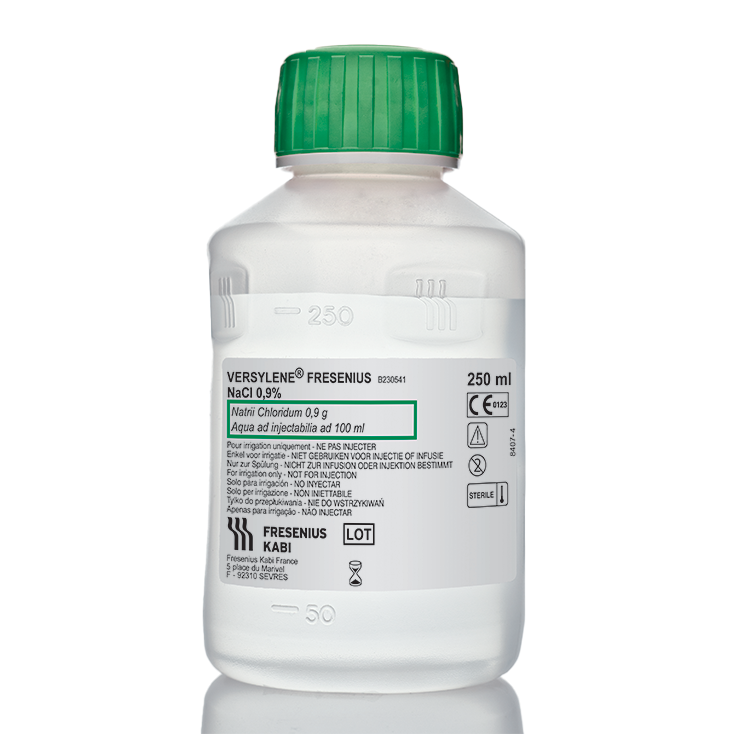 • Chlorure de sodium 0,9 % (NaCl), Flacon de 250mL, 500mL, 1L