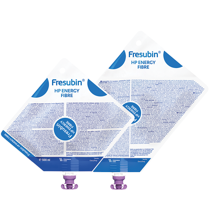 Nutrition complète par sonde hypercalorique hyperprotéinée avec fibres.