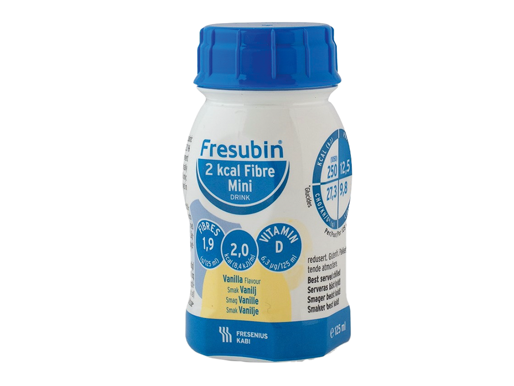 Fresubin® 2kcal Fibre Mini Drink is prescribable on FP10/GP10 for the following indications: For the dietary management of disease related malnutrition, short bowel syndrome, intractable malabsorption, pre-operative preparation of malnourished patients, dysphagia, proven inflammatory bowel disease, following total gastrectomy, bowel fistula plus CAPD and haemodialysis.