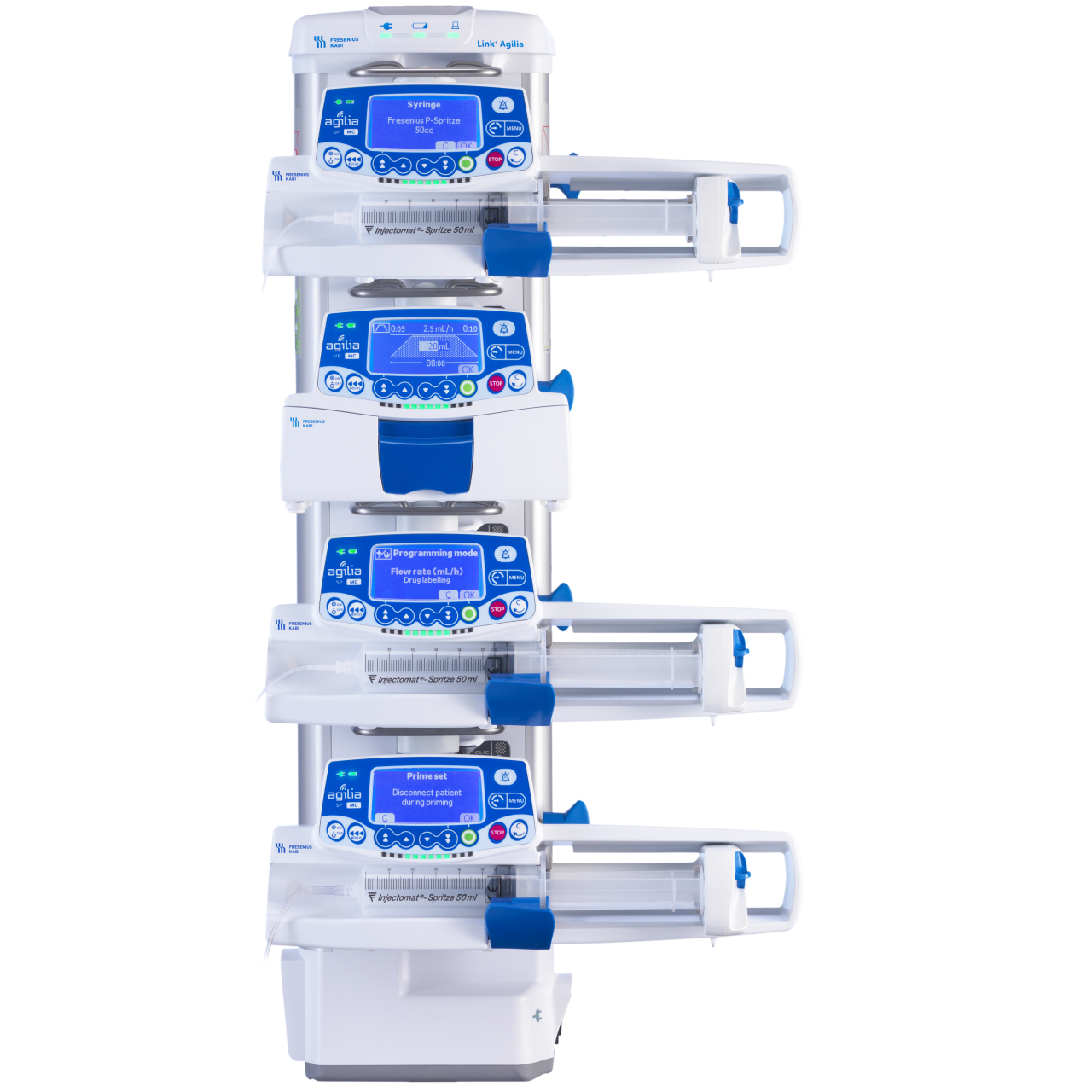 The new docking station, integrable in an Information System (IT) environment. 3 Versions of Link+Agilia: Link+4, Link+6, Link+8. Link+ Agilia rack does NOT change the standalone pump behavior.
