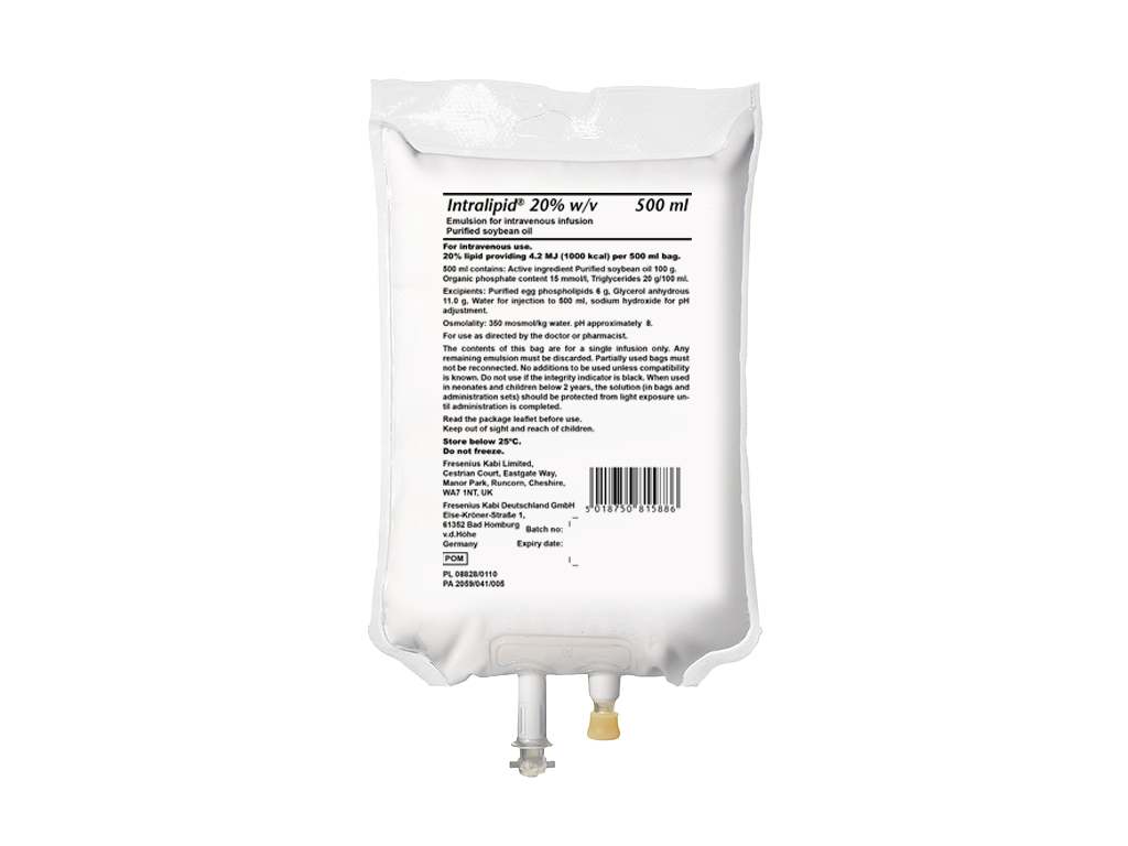 - Intralipid 20% may be given as a separate infusion or as an admixture - see SmPC for further information on administration