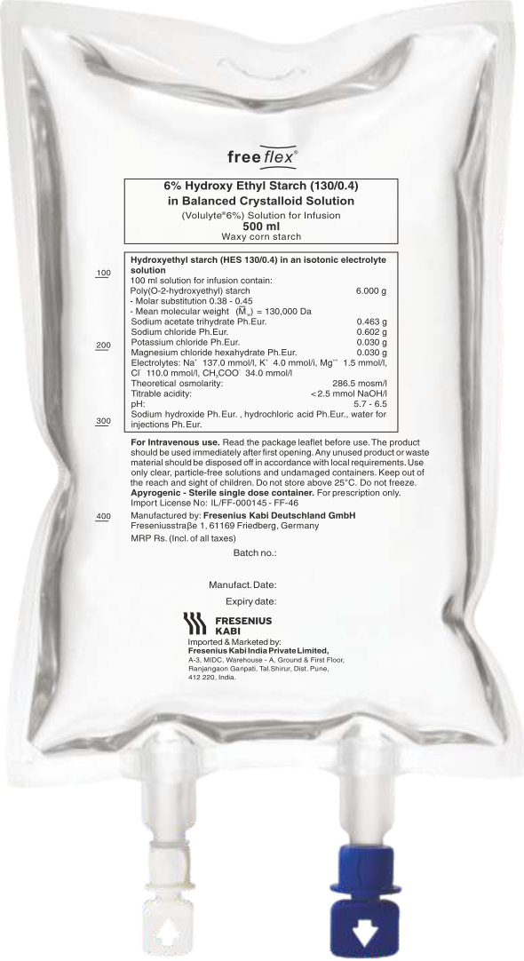 - 6% hydroxyethyl starch 130/0.4 in a balanced electrolyte solution