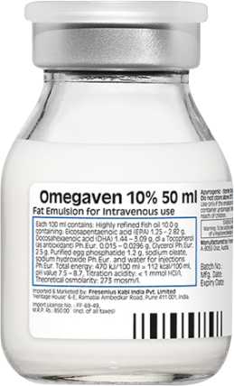 - The infusion rate should not exceed 0.5 ml Omegaven/kg body weight/hour be administered simultaneously with other fat emulsions