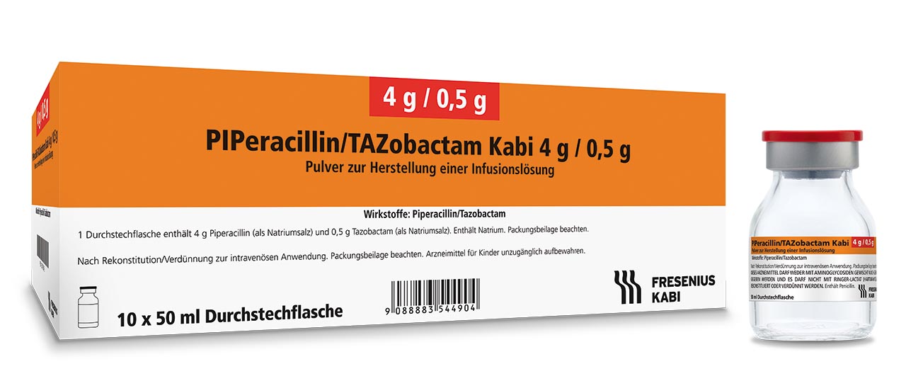 Piperacillin/Tazobactam Kabi is an intravenous antibiotic combination containing the extended-spectrum penicillin piperacillin and the beta-lactamase inhibitor tazobactam