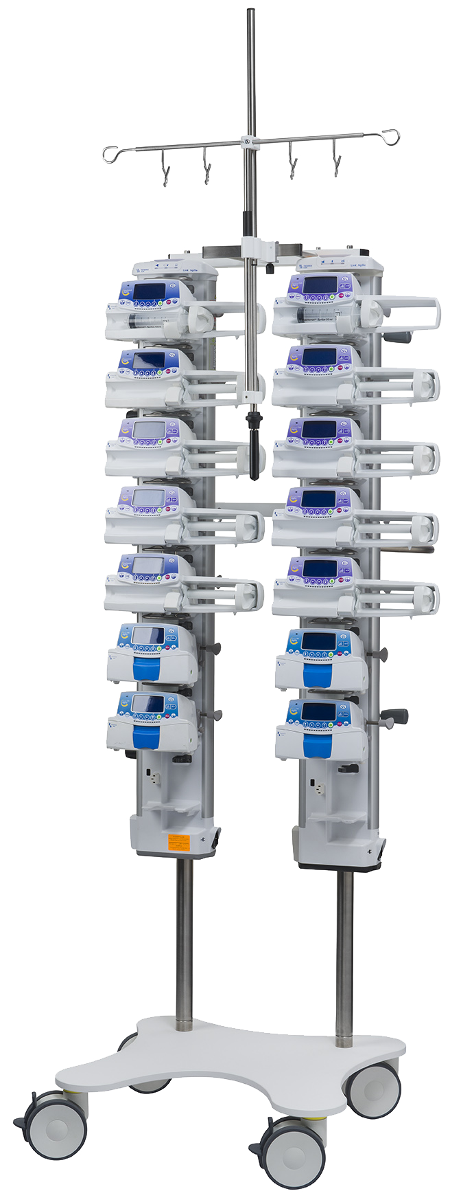 - Robust intravenøst stativ for oppheng av opptil to linker og 16 pumper